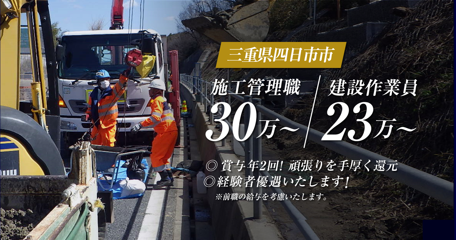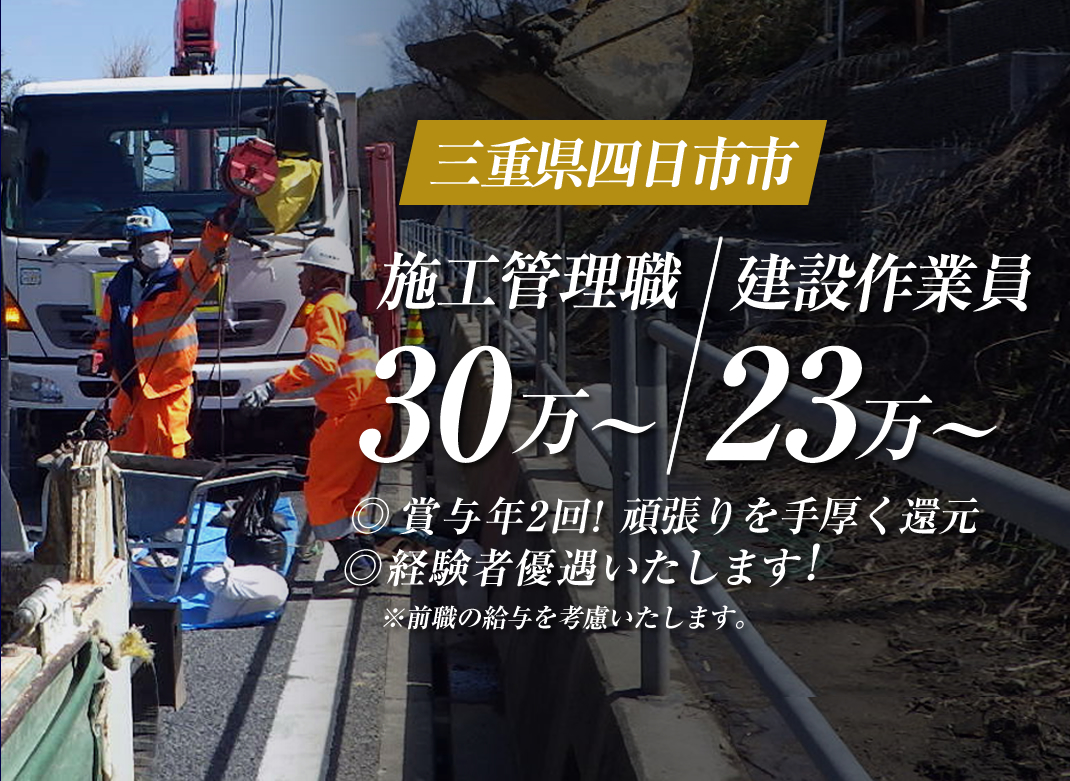 | 給与 | 施工管理30万~、建設作業員23万~ |