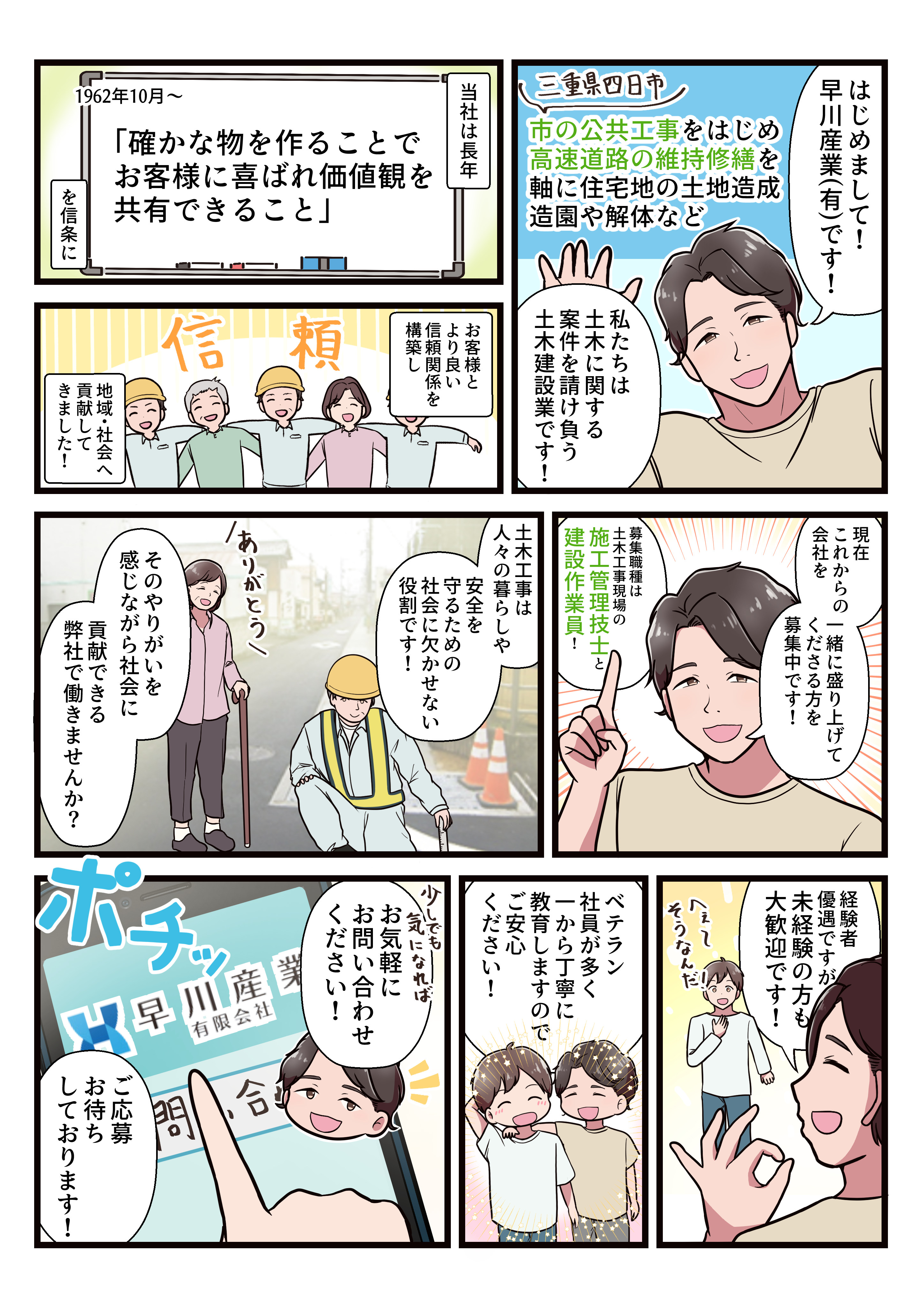 | 仕事内容 | 市の公共工事、高速道路の維持修繕、宅地造成工事等 |